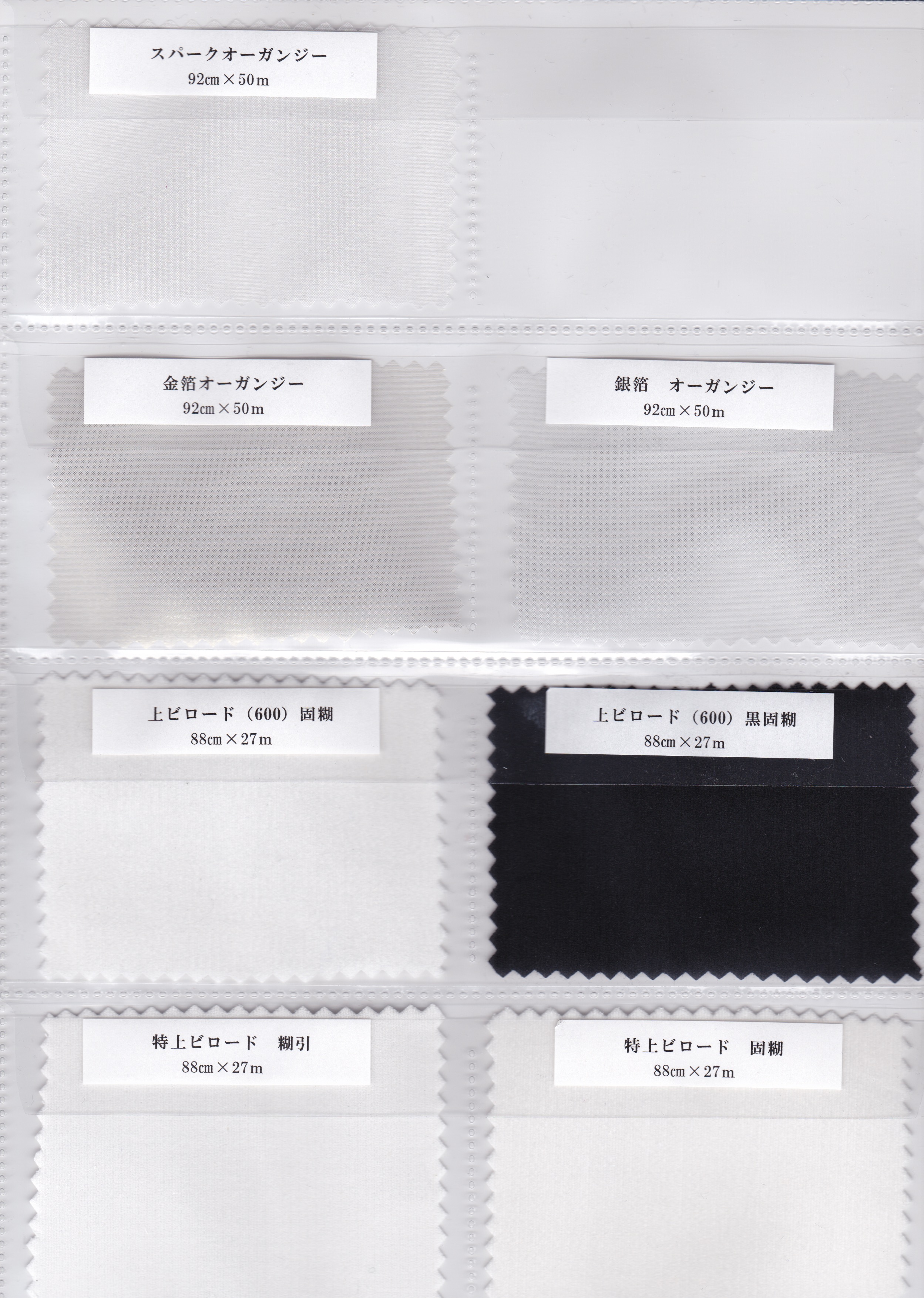 ・ゴールドポプリン固糊・ゴールドポプリン中糊・オーガンジー固糊・オーガンジー黒固糊